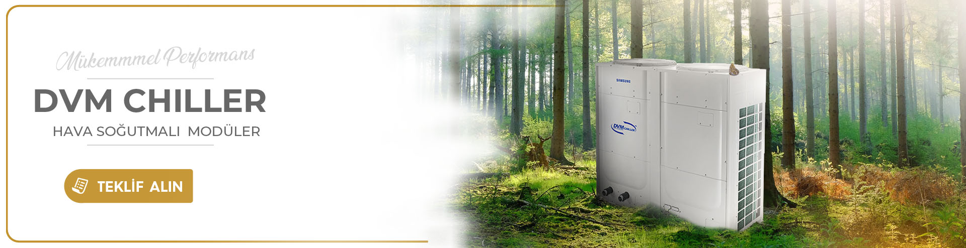 DVM Chiller Merkezi Klima dış ünite ile gaz akış dağıtıcıları yardımıyla birden çok iç ünitenin birbirinden bağımsız olarak kontrol edilebildiği klima sistemleridir.